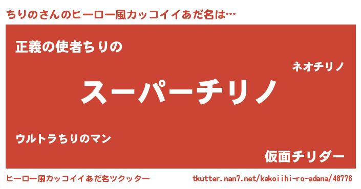 | ヘコむあだ名 | 『ちりにー』『ちりの(遠い目)』 |