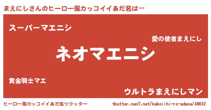 | ヘコむあだ名 | 『まえにし(笑)』『まえもー』 |