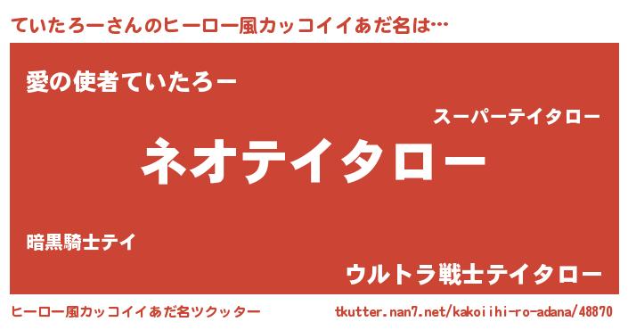 | 男性向けラノベタイトル風あだ名 | 『ていたろーに滅ぼされるだけの簡単なお仕事です』 |