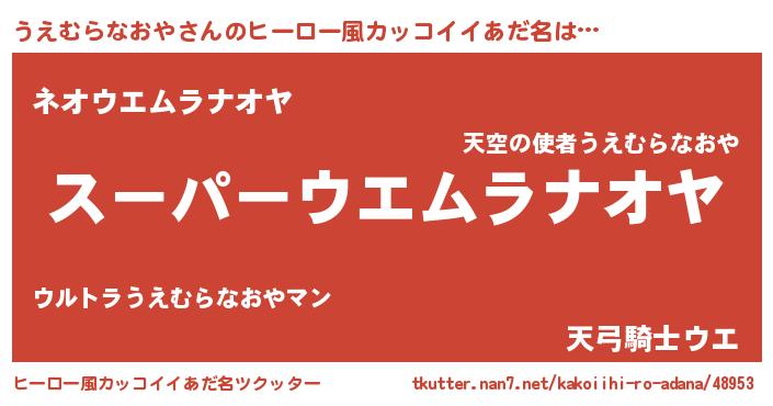 | ヘコむあだ名 | 『うえもー』『うえむらなおや(笑)』 |