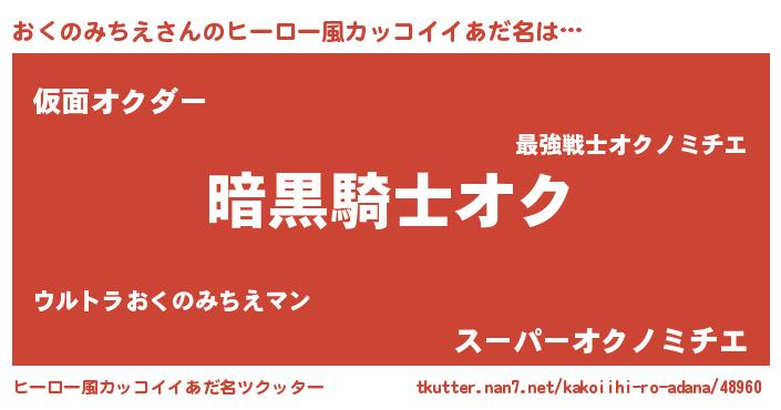 | 欧米人風あだ名 | 『ウサインおくのみちえ』 |