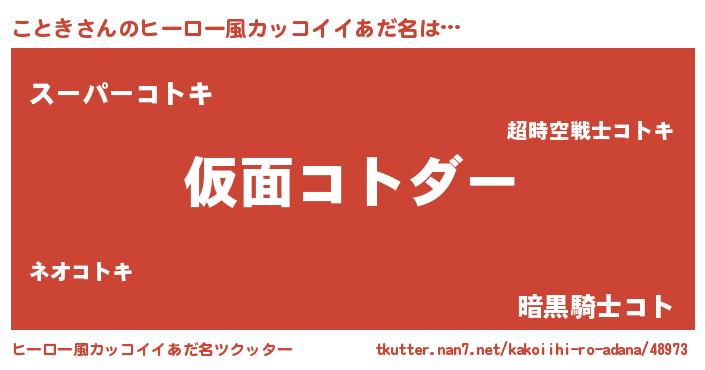 | 男性向けラノベタイトル風あだ名 | 『この素晴らしい世界にこときを!』 |