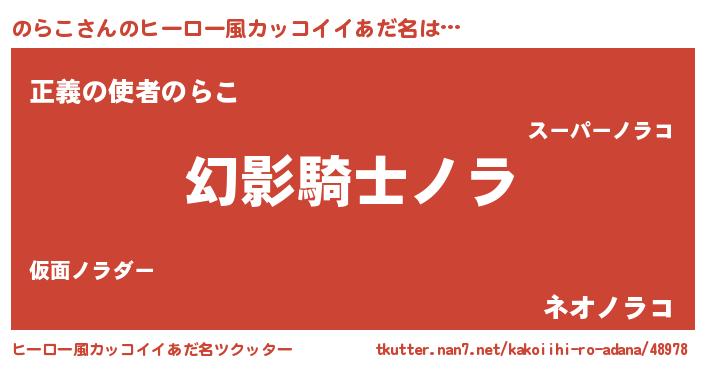 | ファンタジー風あだ名 | 『ファントムノラス』『カークノララー』 |