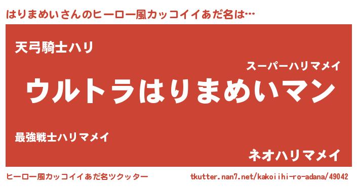 | 女子向けラノベタイトル風あだ名 | 『はりまめいの玉の輿計画!』 |
