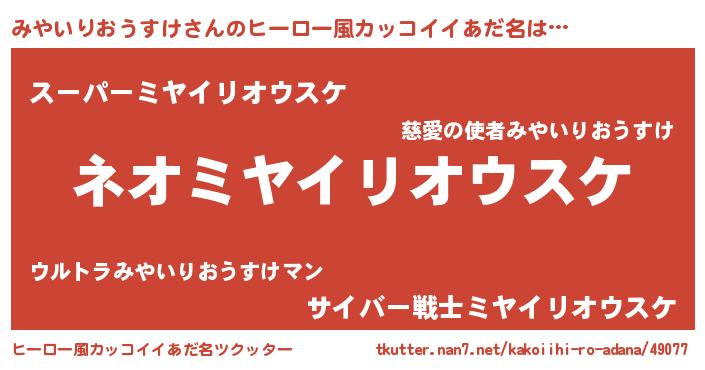 | 男性向けラノベタイトル風あだ名 | 『ミヤイリオウスケスレイヤー』 |