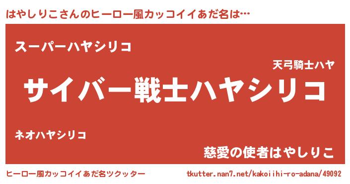 | 女子向けラノベタイトル風あだ名 | 『闇のはやしりこ』『はやしりこ恋絵巻』 |