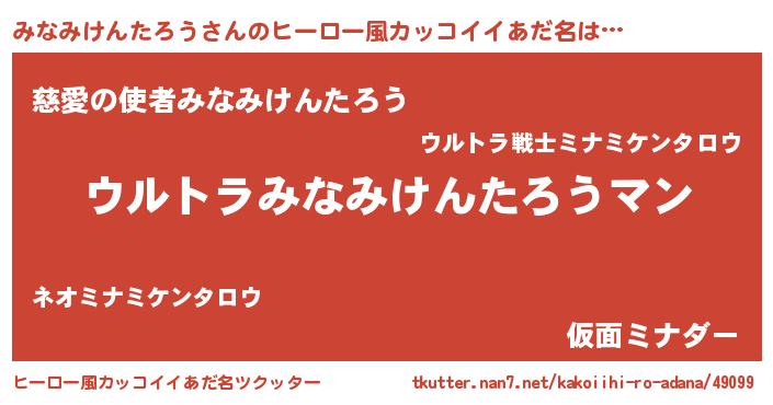 | 女子向けラノベタイトル風あだ名 | 『シンデレラみなみけんたろう家の靴箱館』 |