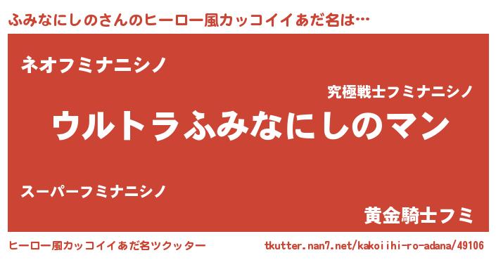 | 男性向けラノベタイトル風あだ名 | 『ふみなにしのに滅ぼされるだけの簡単なお仕事です』 |
