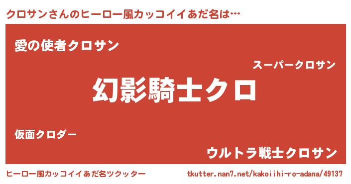 | 男性向けラノベタイトル風あだ名 | 『うちのクロサンが世界を掌握している!』 |