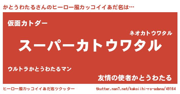 | 胡散臭い通販商品みたいなあだ名 | 『モテモテ間違いなし霊験あらたかなお札…その名も「かとうわたる」』 |