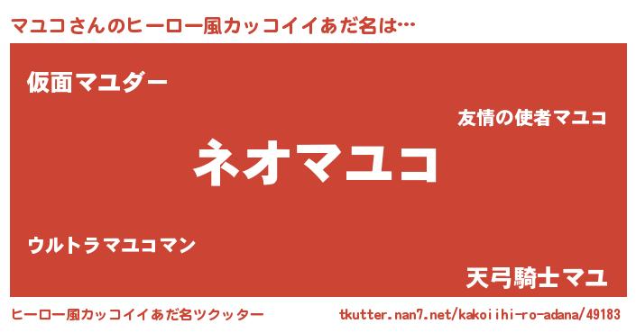 | 女子向けラノベタイトル風あだ名 | 『異世界で失敗しない100のマユコ』 |