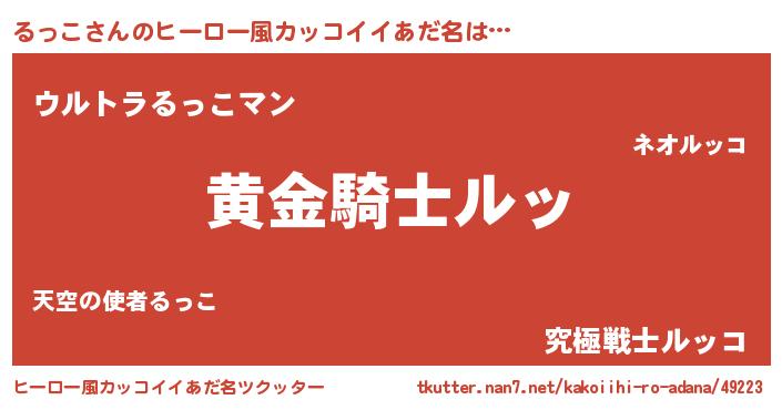 | 男性向けラノベタイトル風あだ名 | 『ルッコスレイヤー』 |
