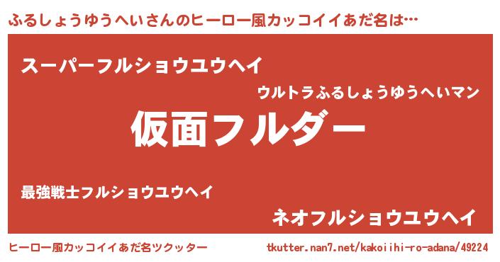 | 男性向けラノベタイトル風あだ名 | 『はたらくふるしょうゆうへいさま!』 |