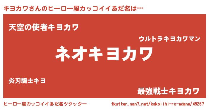 | 男性向けラノベタイトル風あだ名 | 『キヨカワという概念が存在しない退屈な世界 』 |
