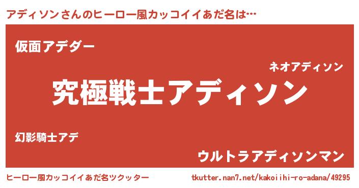 | 意味不明あだ名 | 『自称アディソン』『永久保存アディソン』 |