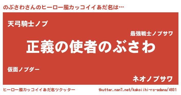 | 男性向けラノベタイトル風あだ名 | 『おまえをオタクにしてやるから、俺をのぶさわにしてくれ! 』 |