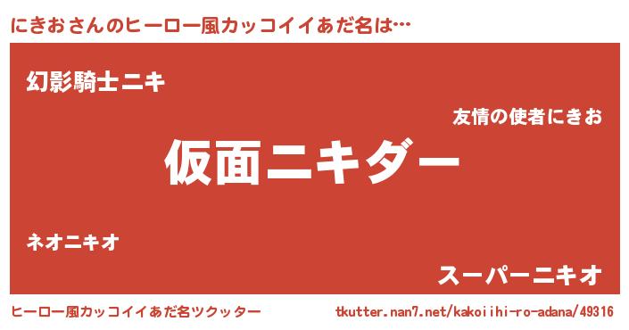 | 男性向けラノベタイトル風あだ名 | 『魔弾の王とにきお』『にきおの憂鬱』 |