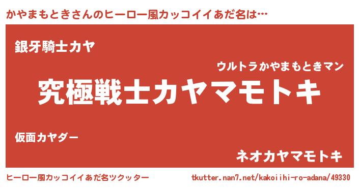 | ヘコむあだ名 | 『かやっ子』『かやまもとき(爆)』 |