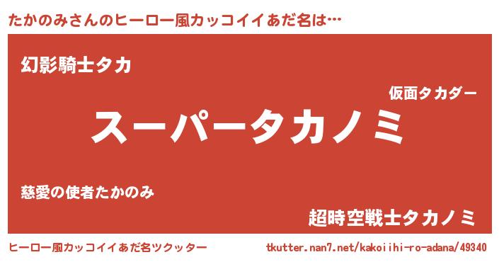 | 男性向けラノベタイトル風あだ名 | 『タカノミアートオンライン』 |
