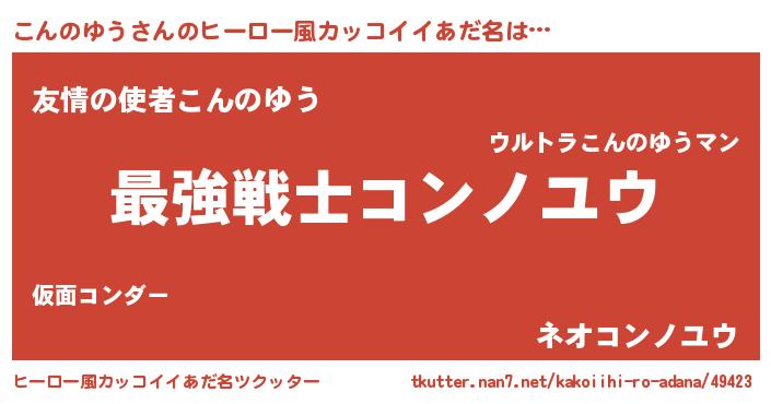 | 男性向けラノベタイトル風あだ名 | 『Re:こんのゆうから始める異世界生活』 |