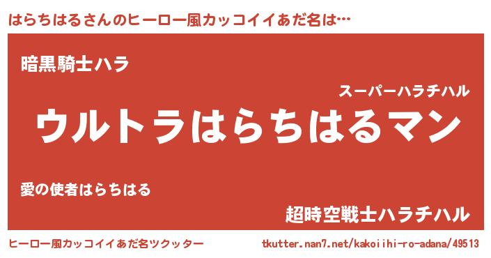 | ファンタジー風あだ名 | 『エターナルハラチハルー』『ゼハラトゥ』 |