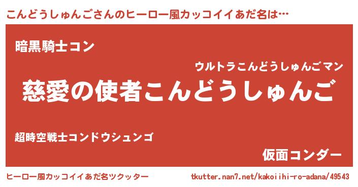| 男性向けラノベタイトル風あだ名 | 『ノーゲーム・ノーコンドウシュンゴ』 |