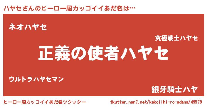 | ヘコむあだ名 | 『ハヤセ(笑)』『ハヤを』『豆乳』 |