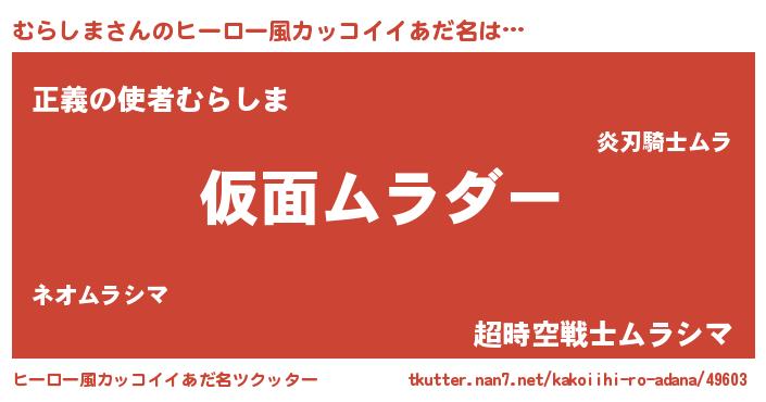 | 意味不明あだ名 | 『住所不定無職むらしま(81歳)』 |