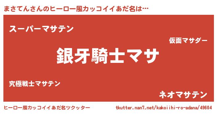 | 男性向けラノベタイトル風あだ名 | 『まさてんの嫁は女の子じゃないと思った?』 |