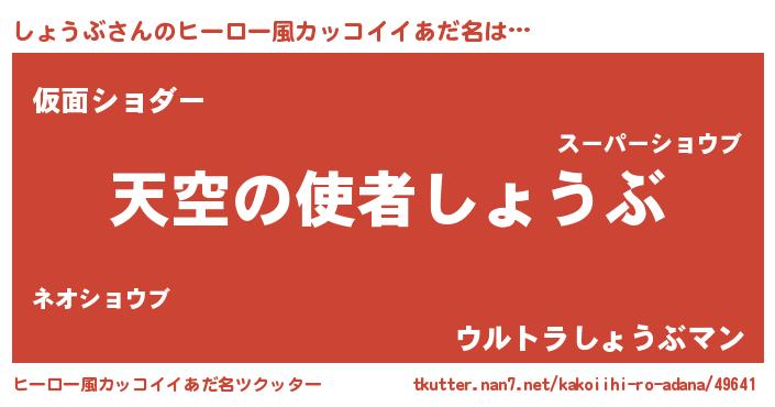 | 男性向けラノベタイトル風あだ名 | 『うちのしょうぶが世界を掌握している!』 |