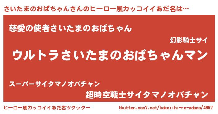 | 意味不明あだ名 | 『さいたまのおばちゃんフォーエバー』 |