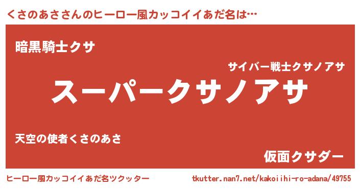 | 意味不明あだ名 | 『ペロリンくさのあさ』『自称くさのあさ』 |