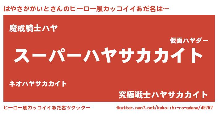 | 男性向けラノベタイトル風あだ名 | 『ハヤサカカイトアートオンライン』 |