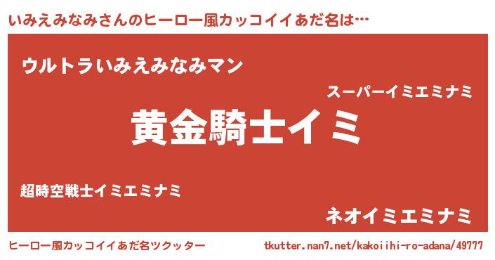 | 男性向けラノベタイトル風あだ名 | 『イミエミナミスレイヤー』 |