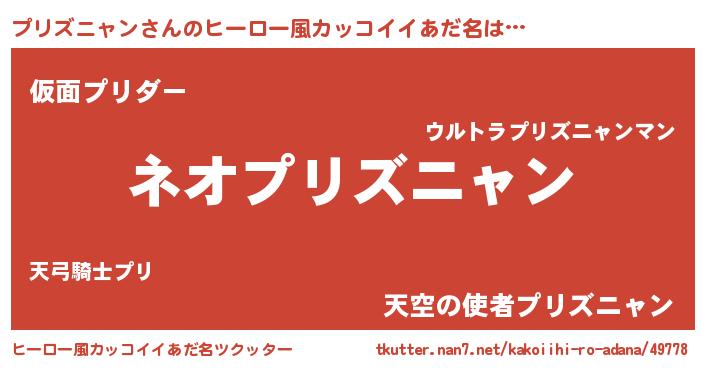 | 男性向けラノベタイトル風あだ名 | 『プリズニャンという概念が存在しない退屈な世界 』 |