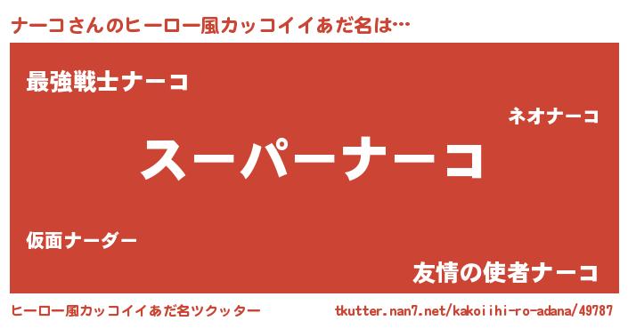 | 女子向けラノベタイトル風あだ名 | 『ナーコ姫と円卓の騎士』『闇のナーコ』 |