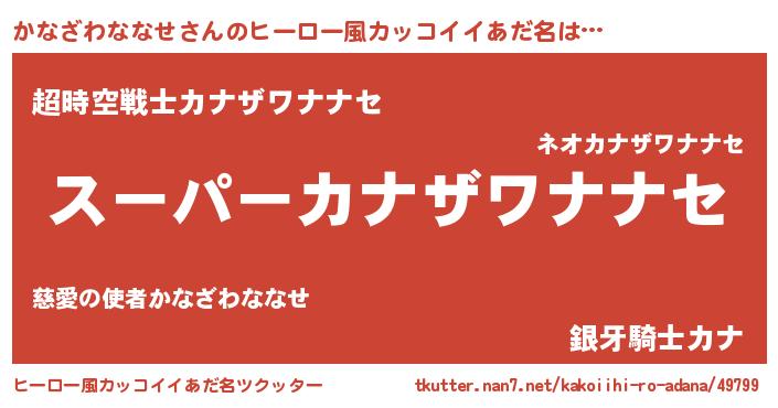 | 男性向けラノベタイトル風あだ名 | 『かなざわななせの憂鬱』 |