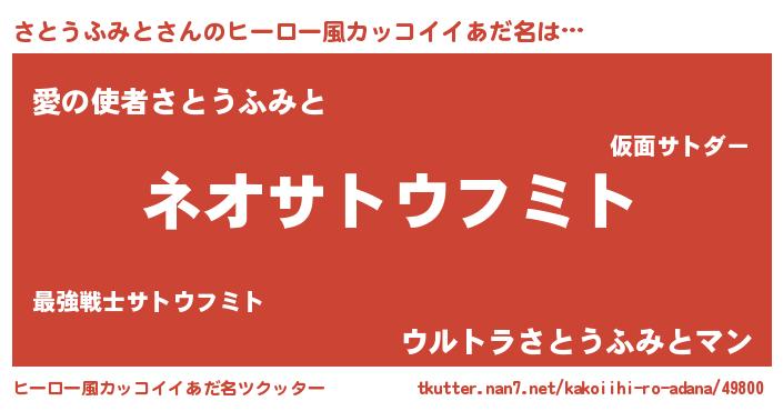 | ヘコむあだ名 | 『さとうふみと(苦笑)』『なまこ酢』 |