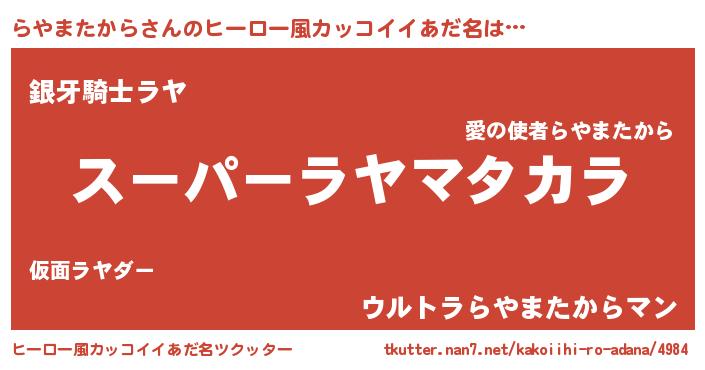 | 胡散臭い通販商品みたいなあだ名 | 『モテモテ間違いなし霊験あらたかなお札…その名も「らやまたから」』 |