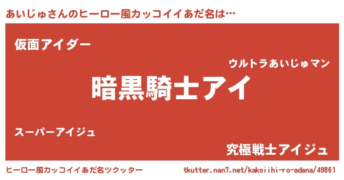 | 女子向けラノベタイトル風あだ名 | 『あいじゅは平凡を望む』 |