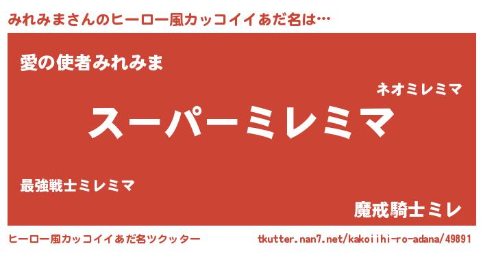 | 男性向けラノベタイトル風あだ名 | 『みれみまの憂鬱』 |
