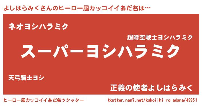 | ヘコむあだ名 | 『よしにゅー』『よしはらみく(震え声)』 |