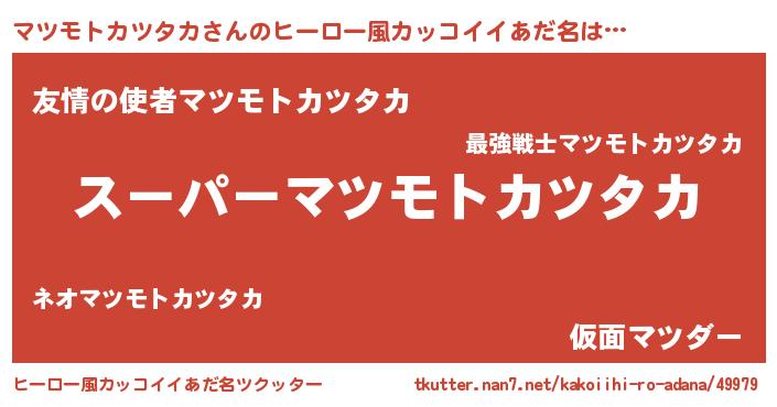 | 男性向けラノベタイトル風あだ名 | 『マツモトカツタカの憂鬱』 |
