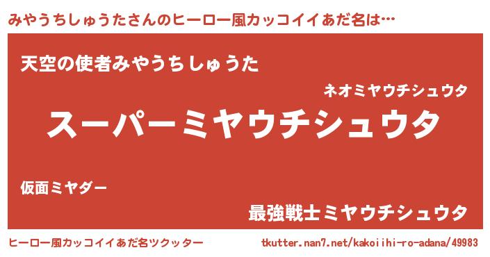 | 男性向けラノベタイトル風あだ名 | 『みやうちしゅうたの憂鬱』 |