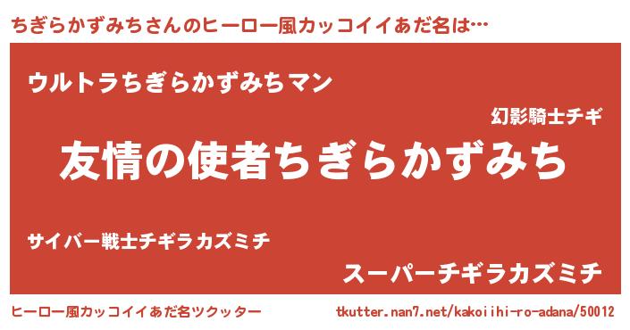 | 男性向けラノベタイトル風あだ名 | 『チギラカズミチスレイヤー』 |