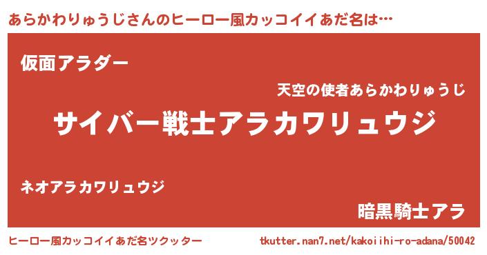 | 女子向けラノベタイトル風あだ名 | 『闇のあらかわりゅうじ』 |
