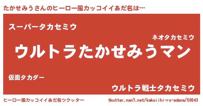 | 意味不明あだ名 | 『たかせみうフォーエバー』 |