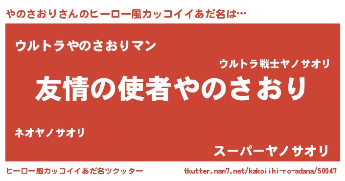 | 男性向けラノベタイトル風あだ名 | 『おまえをオタクにしてやるから、俺をやのさおりにしてくれ! 』 |