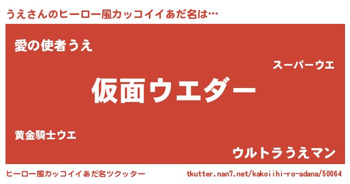 | 男性向けラノベタイトル風あだ名 | 『この素晴らしい世界にうえを!』 |