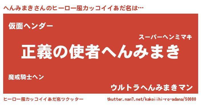 | 胡散臭い通販商品みたいなあだ名 | 『100人中100人が認めたマグネット磁石…その名も「へんみまき」』 |
